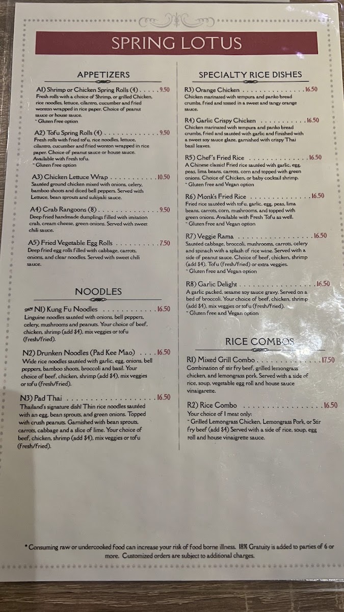 The attentive staff and warm ambiance promise a memorable dining experience, making Spring Lotus a must-visit. Whether you're dining solo or with loved ones, each dish here invites you to savor every moment.